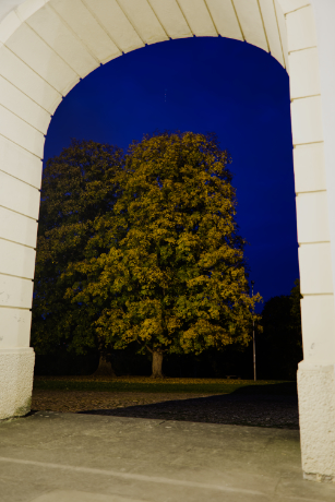 So entstanden auf dem Schloss Solitude diese Fotos. Kein Komet, dennoch ein schöner ungewohnter Blick auf einen herbstlichen Baum im nächtlichen Licht.