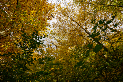 Querfeldein. Am dünnen Baumstamm ziehe ich mich den Abhang hinauf. Das Laub ist nass. Dieser Geruch nach frischem Laub und schon leicht modrigem dazwischen. Der typische Herbstduft. Ich schließe die Augen und ziehe den Duft tief in mich ein. Wunderbar. Auf der Haut spüre ich die Waldluft, ihre Frische, herbstliche Kühle. Ein Streifen Wärme kitzelt mich. Ich schlage die Augen auf. Die Sonne erleuchtet die Wipfel.